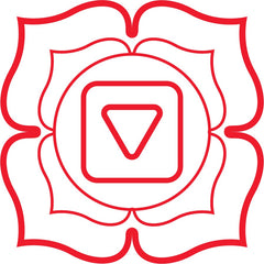 Mūlādhāra è raffigurato come un fiore di loto a quattro petali di colore rosso.
