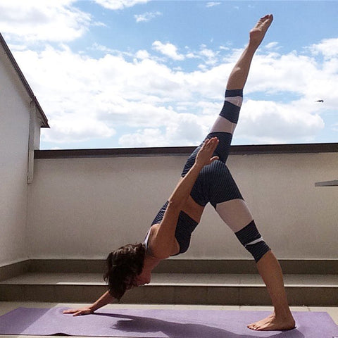 Eka Pada Adho Mukha Svanasana è una variante avanzata di Adho Mukha Svanasana, posizione della sequenza classica di Surya Namaskara (saluto al sole), in cui si solleva una gamba parallela alla linea del torace, assicurandoti che il bacino sia parallelo al pavimento e premendo con il tallone che rimane a terra.